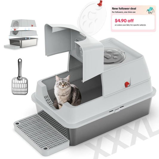 Premium Stainless Steel Top Entry Cat Litter Box – Extra Large, Leak-Proof & Odor-Controlled for Big Cats